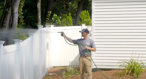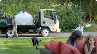 We spray the perimeter of your property, extending 6-10 feet back into the woods or tree line and turning over leaf litter where ticks love to live. We also spray 6-10 feet vertically into tree branches and leaves, where mosquitoes live. If you have a fence, we’ll spray around it. We spray around your house; around all high-traffic areas such as pools, swing sets and patios; under decks and porches; and anywhere else moisture can collect, as well as around all vegetation in the interior of the property. Treatments are most effective when lawns are cut weekly and all standing water and leaf litter are removed.