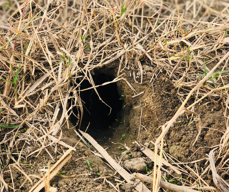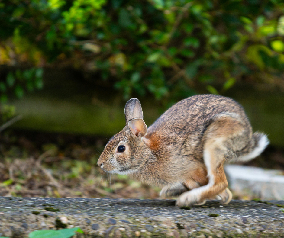 Rabbits often live in rabbit burrows or use underground shelter near shrubs, decks, or sheds. If you’re seeing holes, tunnels, or hidden paths near garden beds, rabbits are far more likely than hares.