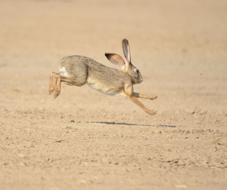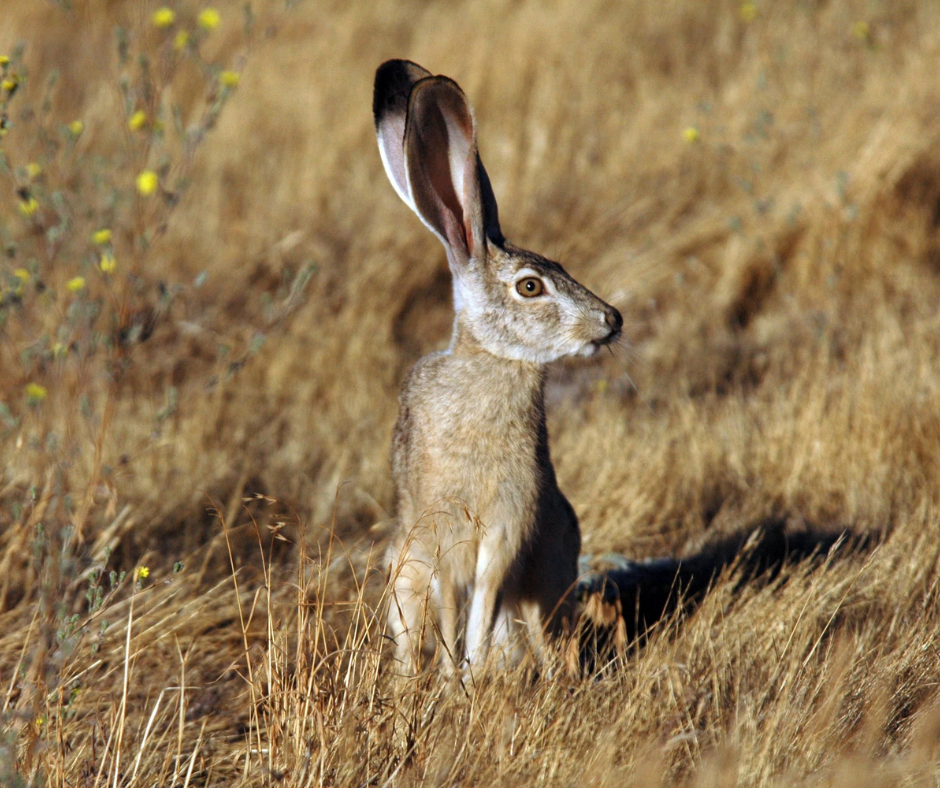 Despite the name, a jackrabbit is actually a hare. Jackrabbits are known for their long ears, long legs, and preference for open-field wildlife environments rather than dense suburban cover.